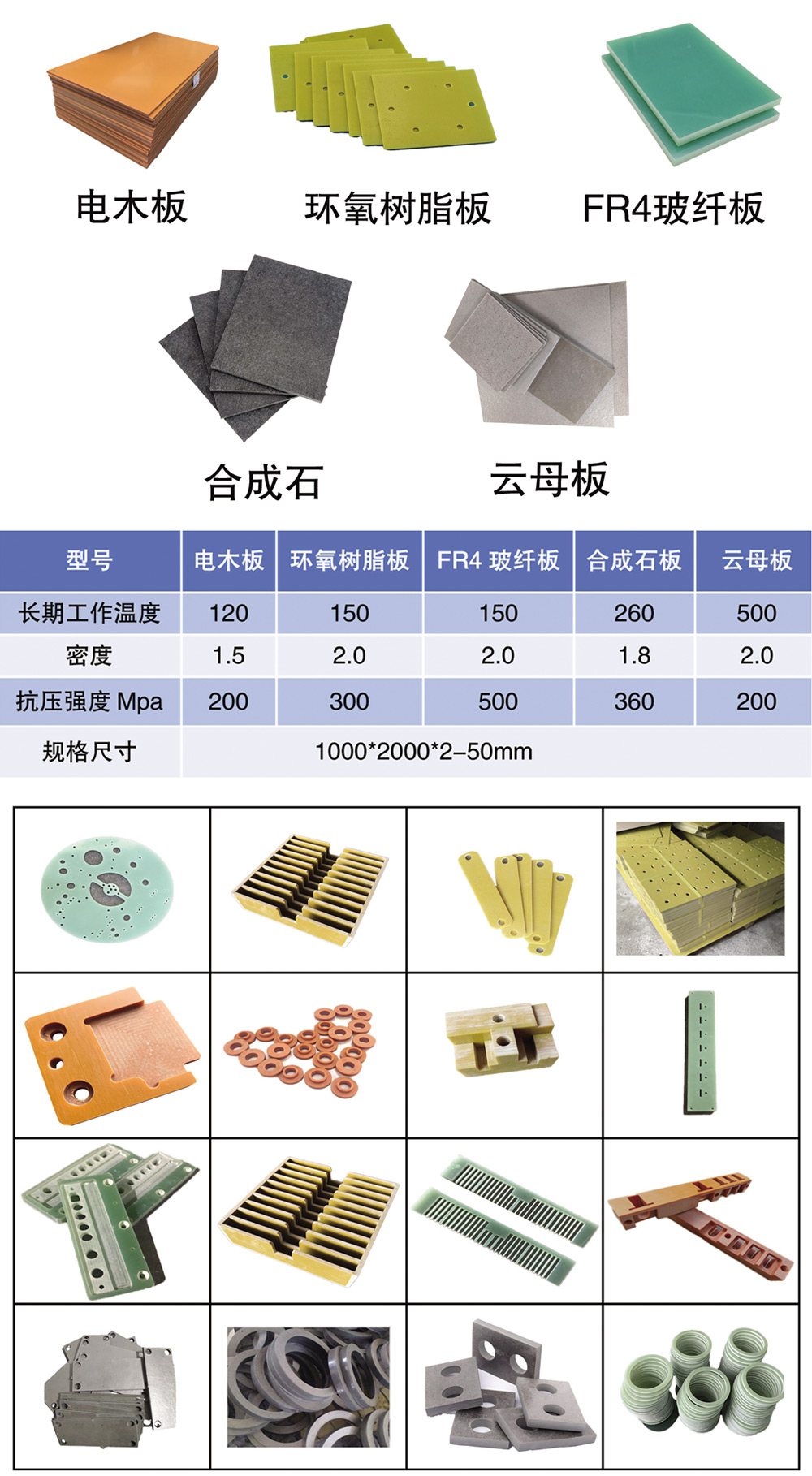 機(jī)械性能要求較高的設(shè)備配件、電器設(shè)備和絕緣結(jié)構(gòu)零部件、治具板、模具夾板;